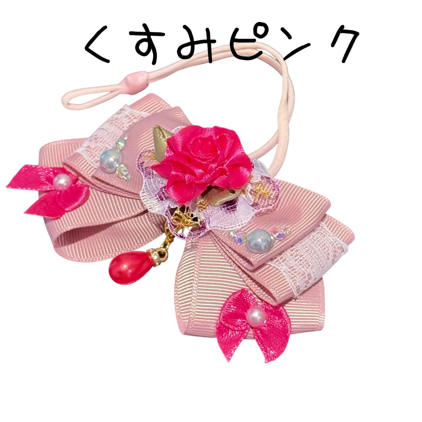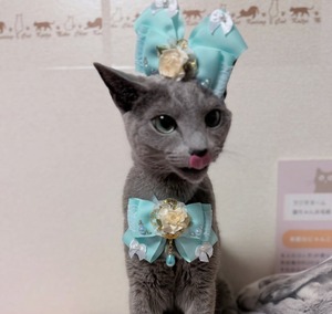 全てリボンで作っていて、ゴワゴワした造花は一切使っていないので、柔らかくて型崩れもしにくく、首周りのゴム部分は、人間のマスク用ゴムを使用しているので、優しい付け心地で、猫ちゃん、わんちゃんのストレスになりません。
